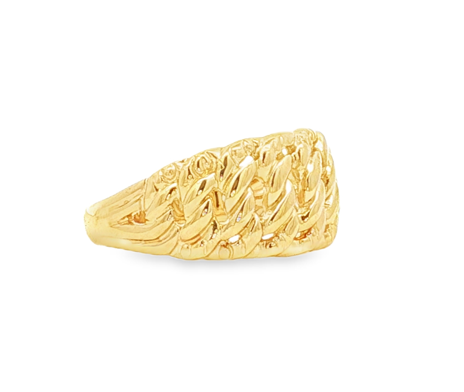 Sublime bague maille américaine en or jaune 750/1000, finement travaillée avec un motif de chaînes entrelacées. Cette pièce audacieuse, au design contemporain, apporte une touche luxueuse et sophistiquée à votre style. Son éclat doré illuminera votre main avec élégance, parfaite pour rehausser votre allure au quotidien.Le poids d'or moyen pour un tour de bague 56 est de 4,6 grammes. Le poids d'or peut varier selon le tour de doigt.