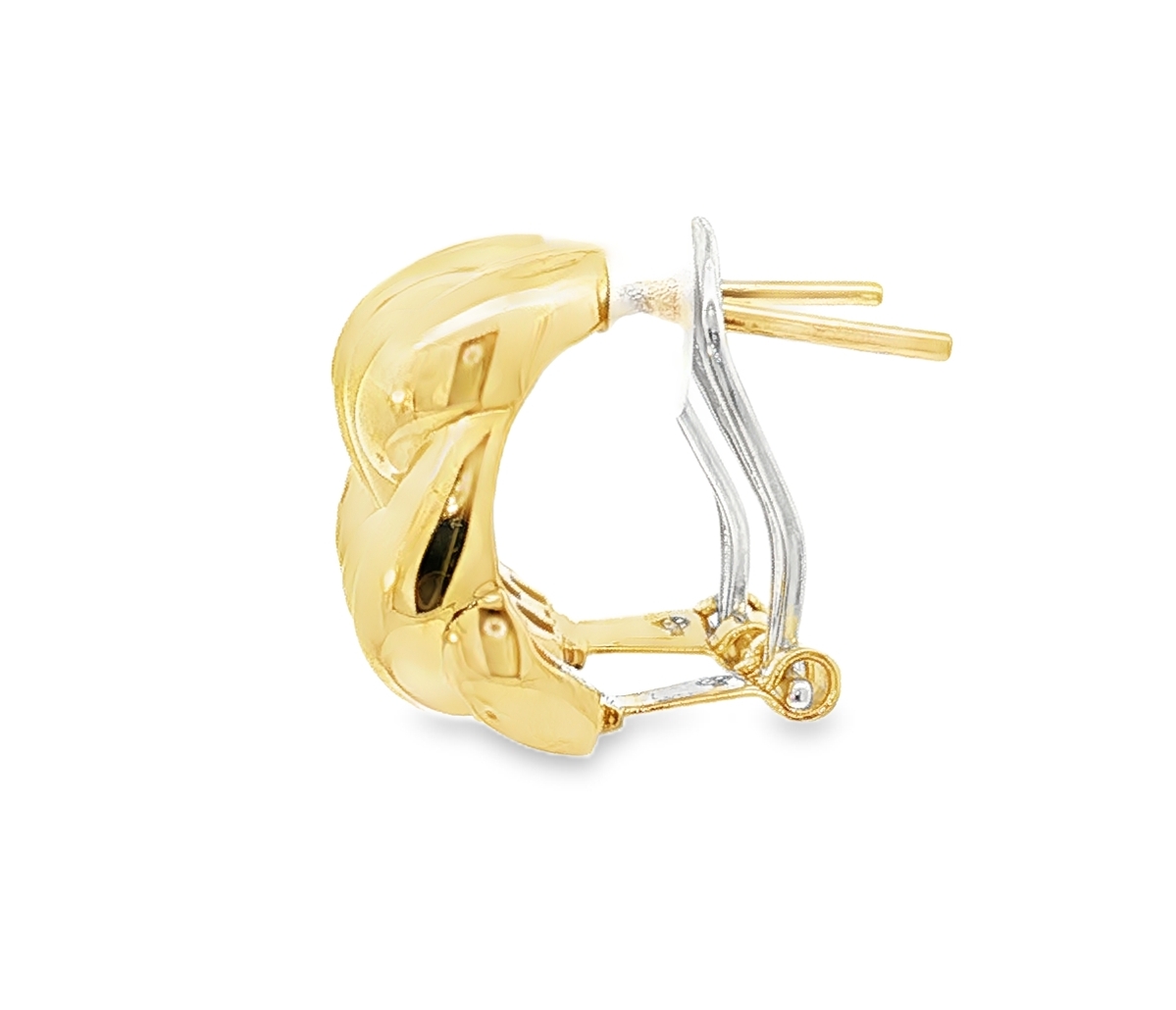 Sublimez votre allure avec ces élégantes boucles d'oreilles clips en or jaune 18 carats. Leur design audacieux et contemporain, évoquant des maillons entrelacés, apporte une touche sophistiquée à toutes vos tenues. Parfaites pour celles qui recherchent un bijou raffiné et facile à porter au quotidien. Le système de fermeture Omega est en or blanc afin de garantir une meilleure robustesse. Le poids théorique de cette boucle d'oreille est de 4,5 grammes pour une dimension de 14 mm x 11 mm.