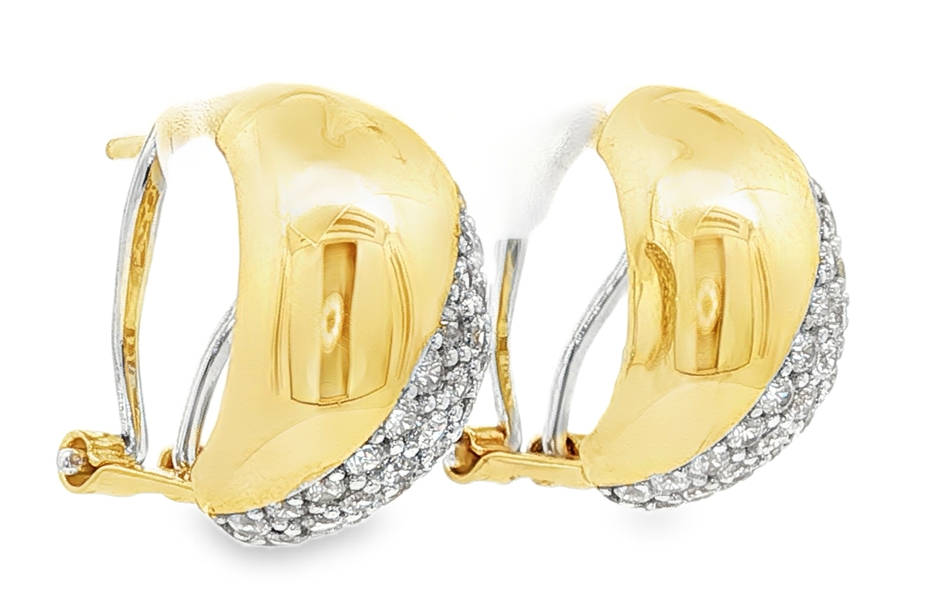 Rehaussez votre collection avec ces élégantes créoles en or jaune 18 carats . La moitié inférieure est sertie d'oxyde de zirconium, reflétant un éclat somptueux. Une alliance parfaite de luxe discret et de sophistication intemporelle. Ces boucles d'oreilles, au design soigné, sont idéales pour ajouter une touche d'éclat à toute tenue. Le système de fermeture Omega est en or blanc afin de garantir une meilleure robustesse. Le poids théorique de cette boucle d'oreille est de 4,6 grammes pour une dimension de 10 mm x 15 mm.