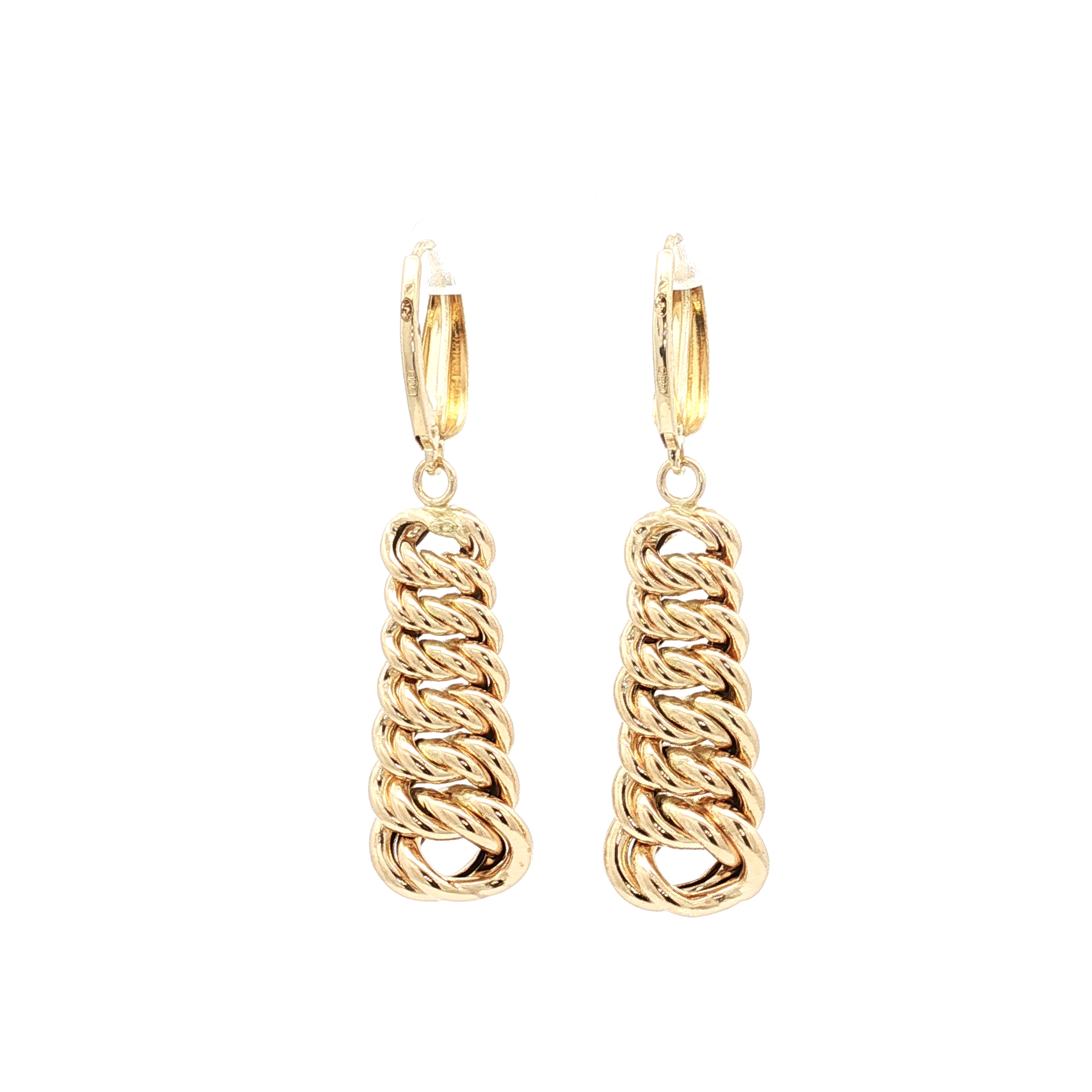 Adoptez un style audacieux avec ces boucles d'oreilles maille américaine pendantes en or jaune 18 carats. Leur design unique en maille épaisse en chute attire le regard, tandis que l'éclat chaleureux de l'or illumine votre visage. Un accessoire de mode incontournable pour affirmer votre personnalité. Le poids théorique de cette boucle d'oreille est de 4,8 grammes pour une dimension de 3,5 cm de longueur x 1,3 cm de largeur au plus large.