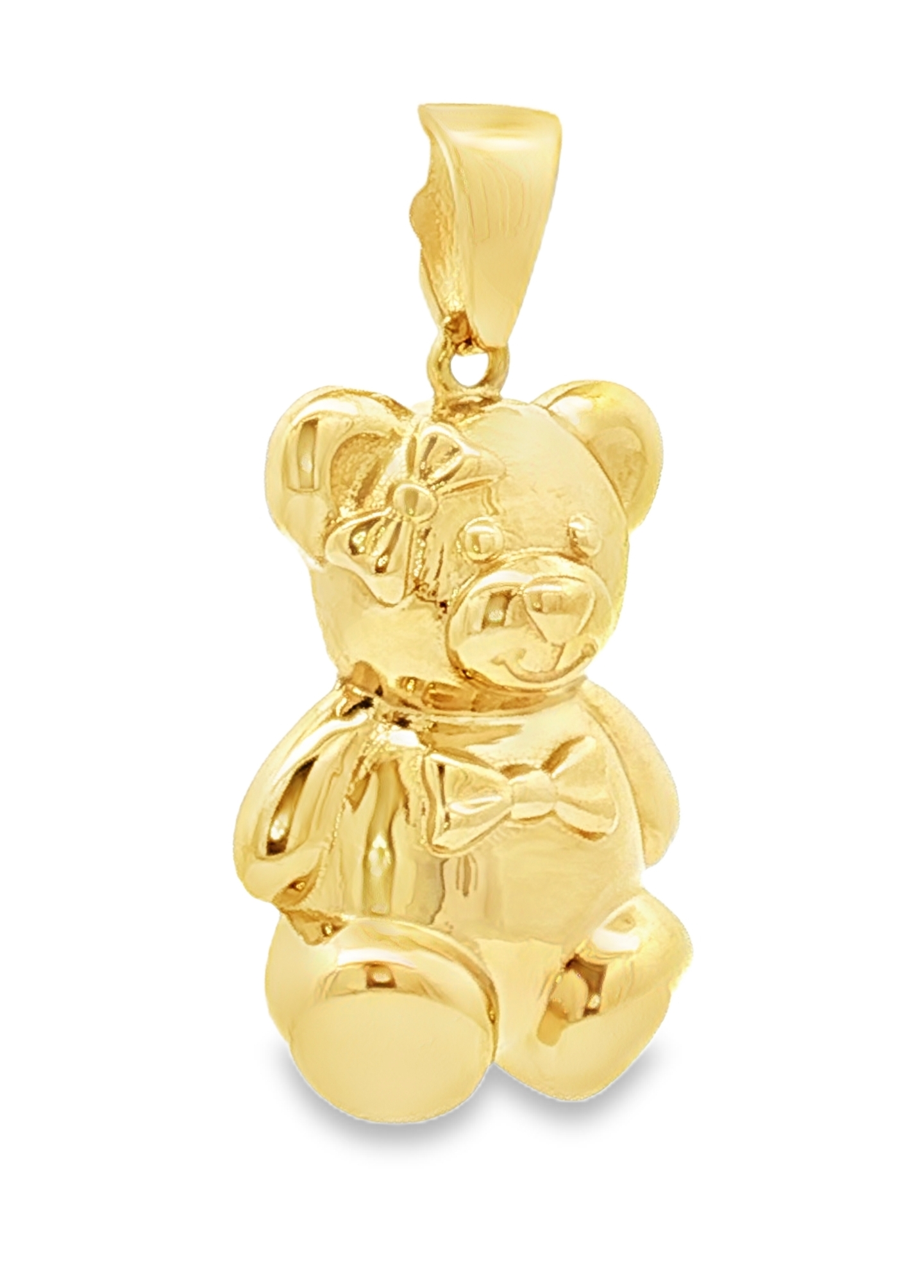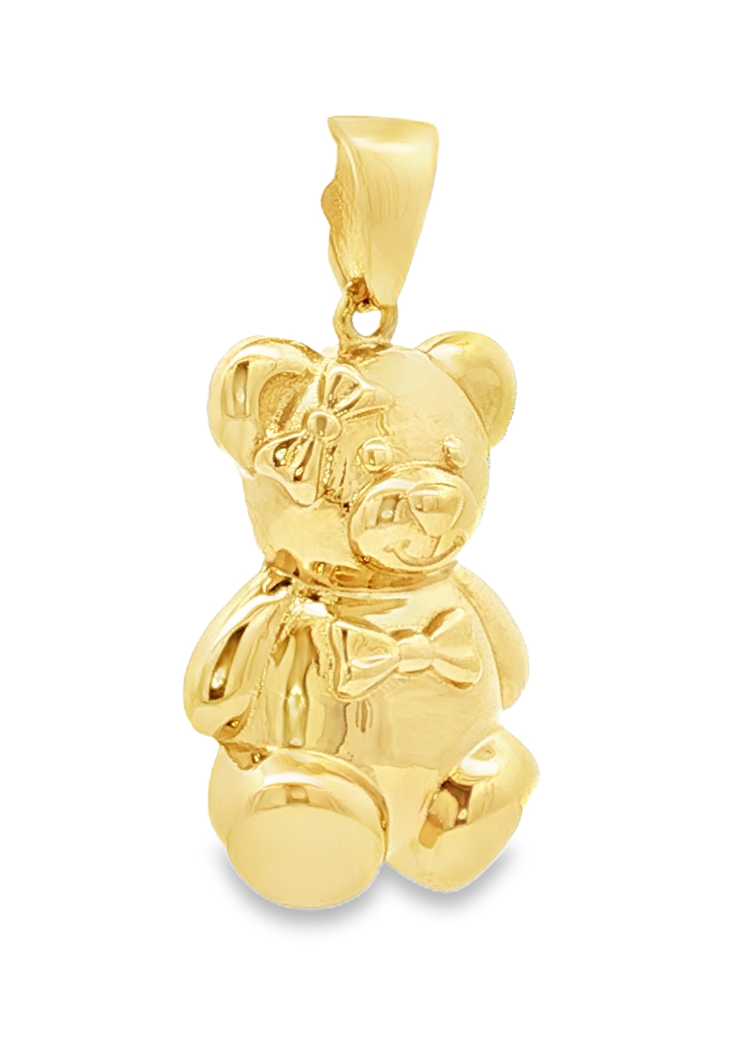 Ce charmant pendentif en or jaune 18 carats représente un adorable ours en peluche. Son design brillant et poli en fait un bijou attachant et intemporel. Parfait pour ajouter une touche ludique et précieuse à votre collection, ce pendentif est idéal pour les amoureux des bijoux originaux et raffinés.