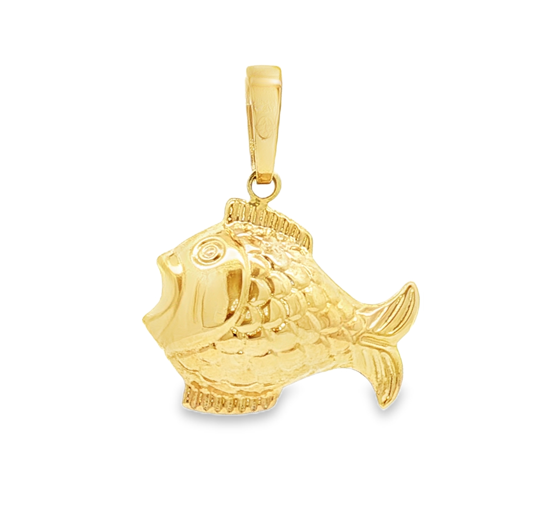 Ce charmant pendentif en or jaune 18 carats arbore un motif ludique de poisson, capturant l'éclat et la chaleur du métal précieux. Son design détaillé et sa finition polie en font un accessoire idéal pour ajouter une touche d'originalité à votre collection de bijoux. Un symbole porte-bonheur à offrir ou à s'offrir.