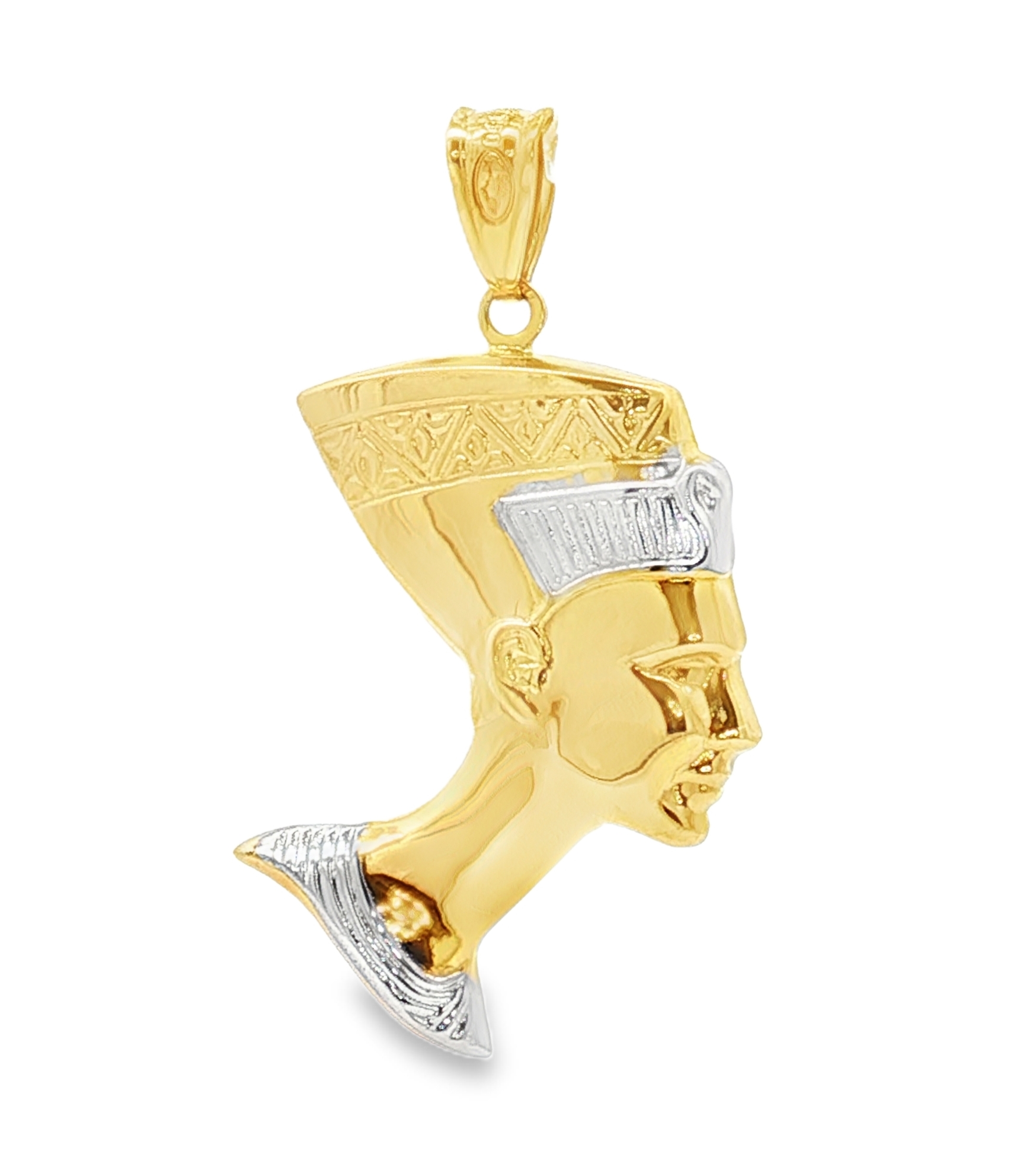 Ce pendentif exquis en or jaune 750/1000 représente une effigie de reine, symbole de noblesse et d'histoire. Son design raffiné capture l'élégance d'une époque révolue, transformée en un bijou contemporain. Un accessoire distinctif qui apportera une touche de mystère et de prestige à votre collection.
